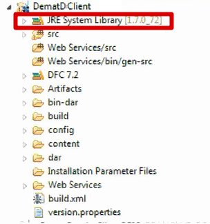 - Check the JRE/JDK version used during the compilation of Documentum project in Project Properties: