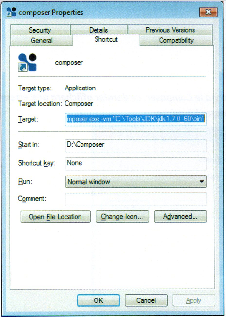 - It is also possible to define the default JRE used for projects in Composer Preferences:
