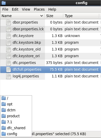 Reading DFC configuration from "file:/opt/dctm/product/7.1/dfc_shared/config/dfc.properties" Reading log4j configuration from "file://opt/dctm/product/7.1/dfc_shared/config/log4j.properties" Reading dbor configuration from "file://opt/dctm/product/7.1/dfc_shared/config/dbor.properties"