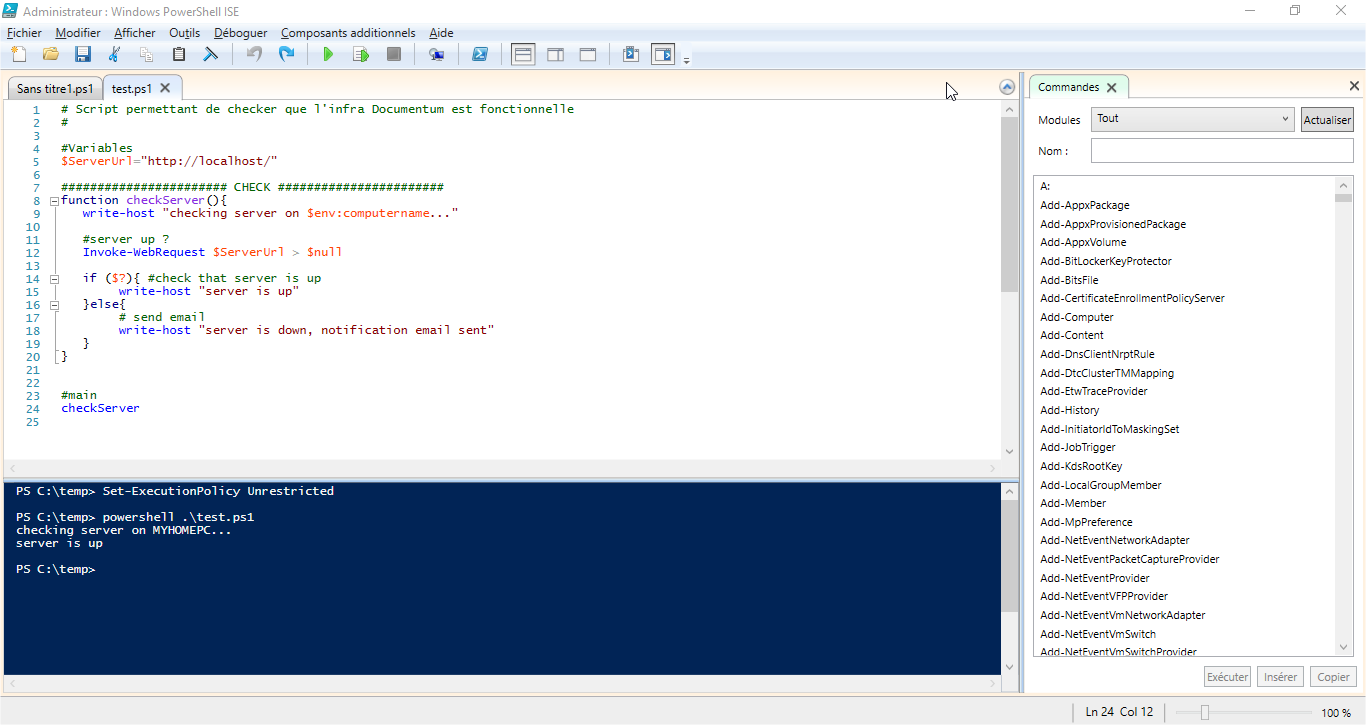 - Start the « Windows PowerShell ISE » with administrator